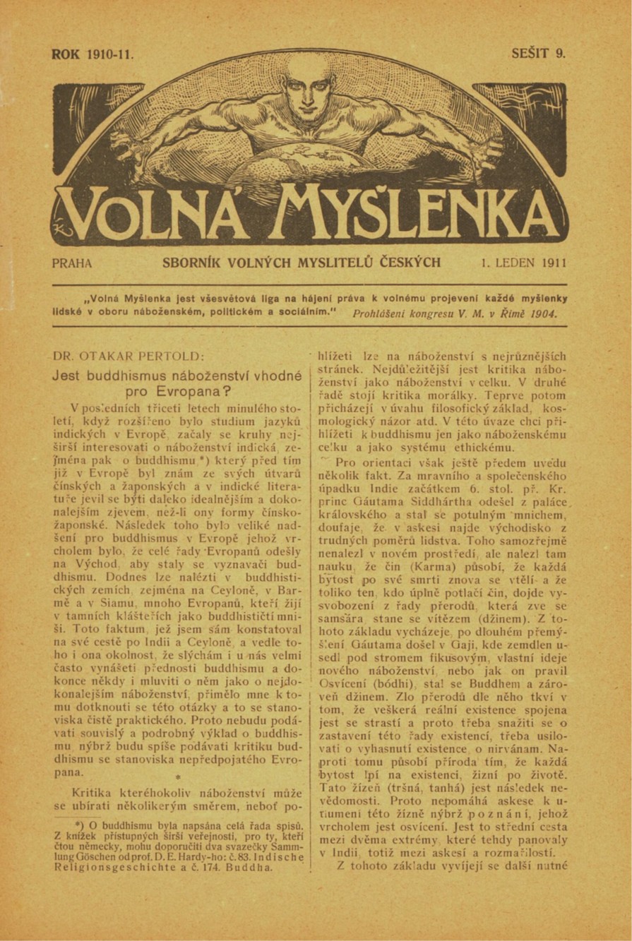 - Pertold, Otakar, 1911, “Jest buddhismus náboženství vhodné pro Evropana? [Is Buddhism a religion convenient for Europeans?],” in: Volná myšlenka [The Free Thought], 6/9-10, p. 225-227, 260-263.
